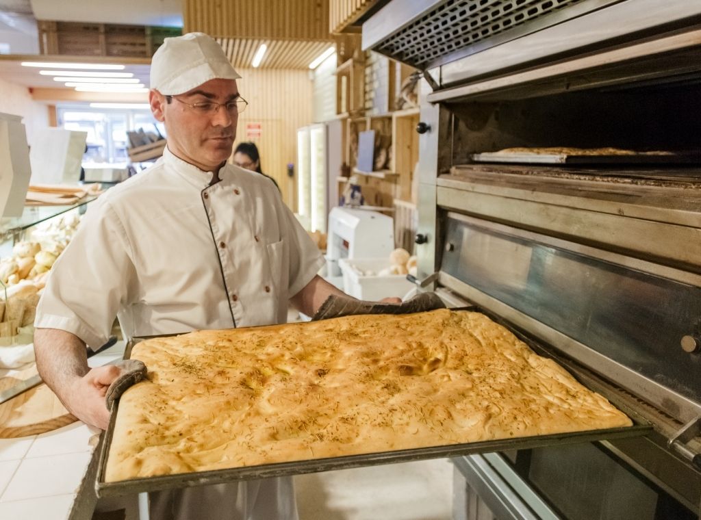 Originário de Génova, este pão achatado é muito aromático, uma vez que envolvido na sua massa se encontra o alecrim. A palavra Focaccia deriva de “focacius” que em latim significa lareira. Aliás, o seu nome deve-se ao facto de, no tempo romano, estes pães serem cozidos sobre brasas e cinzas. Nesta época, a focaccia era tão apreciada que não só era servida em casamentos, como também era oferecida aos deuses.